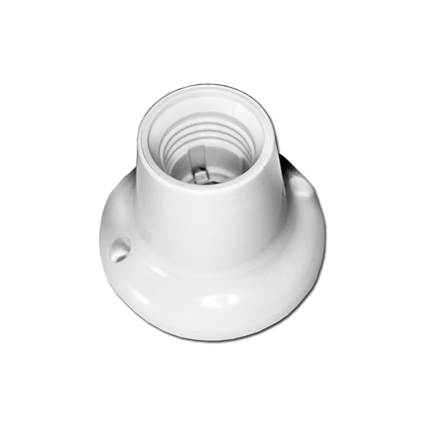 Lampenfassung mit geradem Sockel, aus Kunststoff in Farbe weiß.
