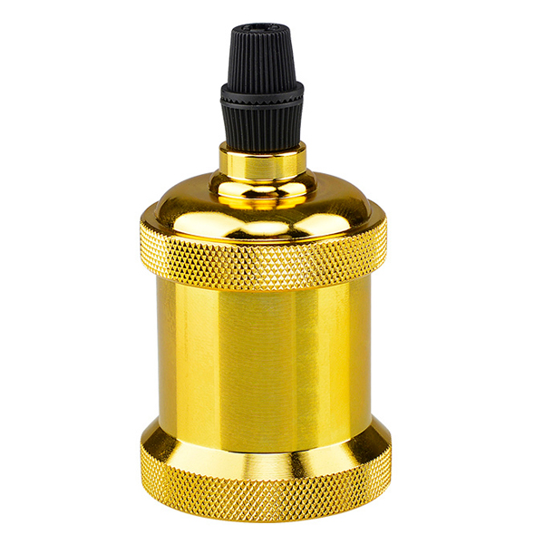 Robuste Lampenfassung aus Metall mit Oberfläche Farbe gold glänzend. Dekorativ, ideal für Hängeleuchten mit sichtbaren Glühbirnen.