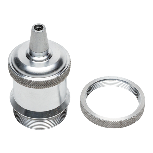 Schöne Lampenfassung hergestellt aus Aluminium, Oberfläche silber alt Inneres aus Keramik, robust und beständig. Geeignet, um mit unseren dekorativen Glühbirnen Vintage zu glänzen. Enthält eine Kabelverschraubung in der gleichen Farbe wie die Lampenfassung, ihre Oberfläche verfeinernd. Gewinde zur Befestigung von Schirmen, Glasschirmen oder Metallgehäusen.