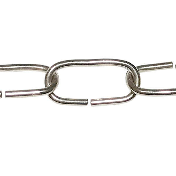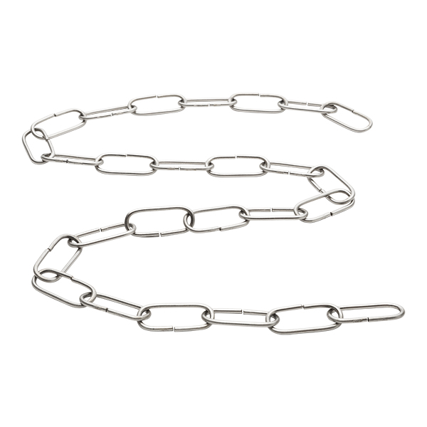 Lampenkette aus Metall, Oberfläche nickel (silberfarben glänzend). Dekorative Kette um Hängelampen zu befestigen. Ersatzteil um Ihre alte Lampe zu restaurieren oder zu reparieren, oder um eine neue herzustellen.
