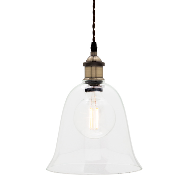 Elegante Deckenleuchte mit transparentem Glas. Bestehend aus Lampenfassung aus Metall, Farbe bronze alt und dazu passene Deckenrosette. Das Textilkabel brauner Farbe Typ geflochten verleiht dieser Lampe im rustikalen Stil mit viel Charme Schlichtheit und Eleganz. Der Lampenschirm aus transparentem Glas, der sie ziert, erlaubt dass sich das Licht gut über den ganzen Raum verbreitet und gleichzeitig den Charme der Glühbirne präsentiert. Diese Lampe aus Glas ist geeignet, um auf gleichmäßige und einheitliche Weise ein Schlafzimmer, Eingangsbereich, Wohnzimmer...etc. zu beleuchten.
