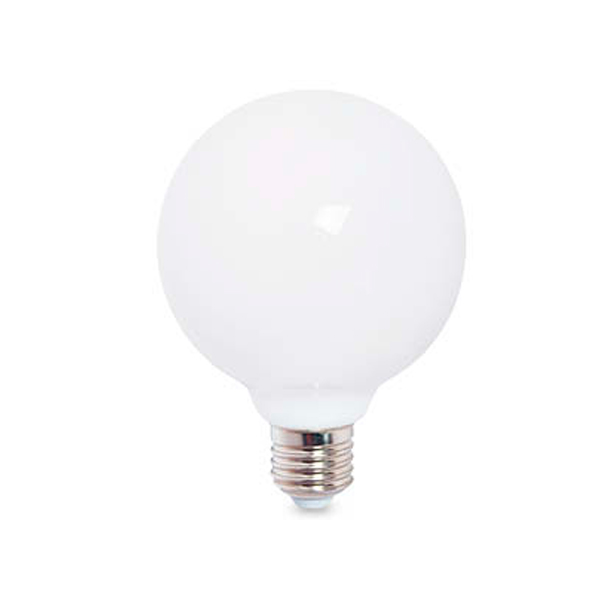 Sehr dekorative Glühbirne, Globe von großen Abmessungen in Opalglas, ohne Kunststoffbasis (alles Glas). Ideal um ein angenehmes, sehr warmes und anheimelndes Ambiente zu kreieren. Sie verbrauchen nur 8W, mit einer Äquivalenz von etwa 70W der herkömmlichen Glühbirne.