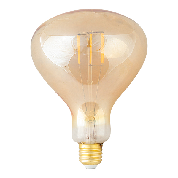 LED Glühbirne für dekorative Zwecke. Globe mit flachem oberen Teil, das uns an einen Pilz von großen Abmessungen erinnert. LED Glühfäden, mit warmem Licht (2700ºk) und Glas bernstein (goldfarben). Ideal für Geschäfte, Gastronomie und Hausgebrauch. Mit einem Verbrauch von nur 6W, äquivalent zu einer herkömmlichen Glühbirne von etwa 60W.