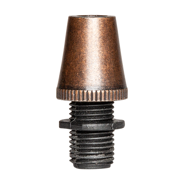 Klemmschraube Kabelbefestigung mit Zierkappe aus Metall Oberfläche Kupfer alt. Perfekter Abschluss für Lampenfassungen und Rosetten aus Metall. Dekoratives Element, das die Funktion hat das Kabel der Lampenfassung zu fixieren, um zu vermeiden, dass das Gewicht an der Schraube hängt oder Beschädigung bei Zugbelastung. Unabdingbar an den Pendeln von Leuchten. Außengewinde Gewindesteigung 10/100 (die gleiche, die alle unsere Lampenfassungen haben)
