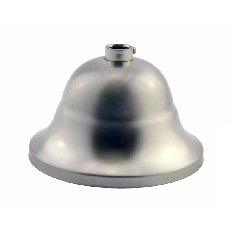 Baldachin vernickelt (silbern matt) für Decke. Teil zur Deckenmontage zum Verdecken der Lampenverbindung. Mit Klemmschraube. Abmessungen: d=90mm. Höhe=55mm.