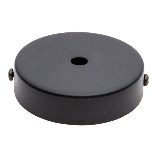 Metallhalterung Farbe schwarz, die sowohl als Lampenbaldachin für die Decke als auch als Kabelausgang und Basis für Wandleuchten dient. Enthält Kit für Montage (Metallquerstück für Wand- oder Deckenbefestigung und Schrauben)