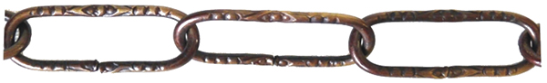 Lampenkette, hergestellt aus Metall mit Oberfläche leder alt, Kettenglieder mit geprägten Verzierungen Dekorative Kette um Hängelampen zu befestigen. Ersatzteil um Ihre alte Lampe zu restaurieren oder zu reparieren, oder um eine neue herzustellen.