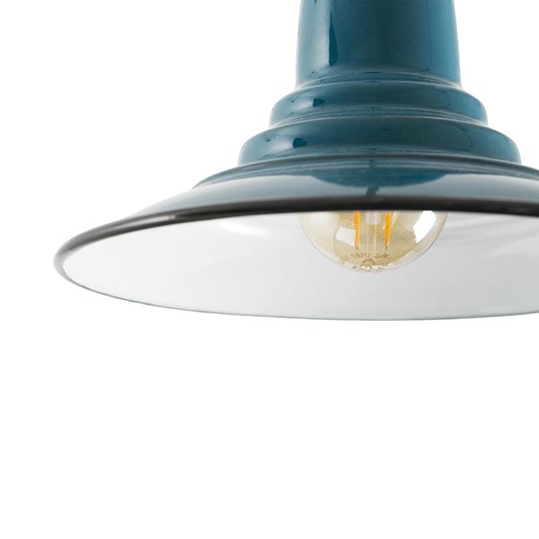 NINETTE ist eine Hängeleuchte im Industriestil mit einem gewissen Retro-Anklang. Ihre Oberfläche in grünlichblauer Farbe versieht sie mit einer perfekten Frische für lässige Zuhause. Textilkabel geflochten, Farbe hellbraun.