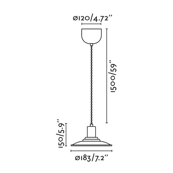 Abmessungen: 1500mm maximale Höhe x 183mm Durchmesser x 150mm Schirmhöhe. Kabel: 150cm (höhenverstellbar)