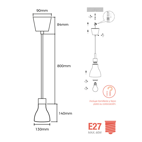 Das Silikongehäuse kann als Zierblende verwendet oder abgenommen und direkt eine dekorative Glühbirne oder eine Globe-Glühbirne verwendet werden. Die Lampenfassung ist ein Gewindekorpus mit Ring zur Befestigung von Schirmen oder Lampengehäusen. Für Glühbirnen mit Schraubgewinde E-27, maximal 60W (wir empfehlen die Verwendung von LED Glühbirnen).