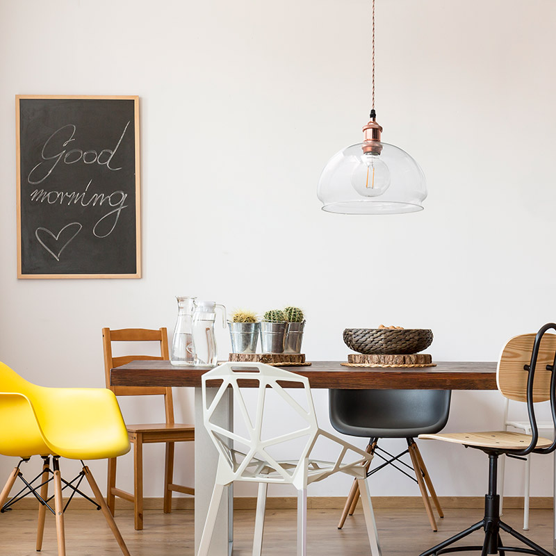 Kominieren Sie sie mit einem unserer transparenten Glasschirme und kreieren Sie eine schöne Hängeleuchte.
