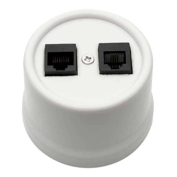 Porzellansockel mit 2 Anschlüssen: Telefon und Daten