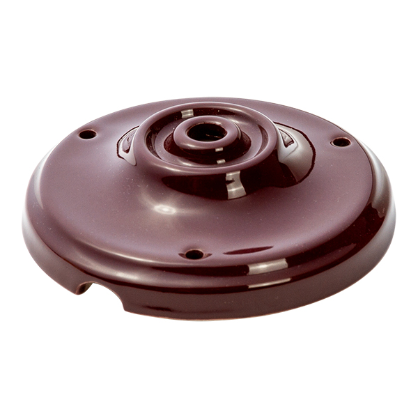 Deckenbaldachin hergestellt aus Porzellan brauner Farbe. Sie wird verwendet zum Verdecken der elektrischen Anschlüsse der Lampen, die von der Decke hängen oder auch als Kabelausgang an der Wand. Kombinieren Sie mit einem unserer Schraubgewinde aus Porzellan und Textilkabeln. Sie verfügt über ein mittiges Loch für das Kabel von 10mm und zwei seitliche Löcher für die Kabeleingänge.