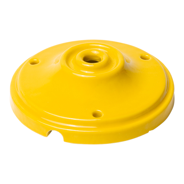 Deckenbaldachin mit Kabelausgang für die Lampenmontage. Hergestellt aus Porzellan beschichtet Farbe gelb. Kombinieren Sie ihn mit unseren Lampenfassungen aus Porzellan und kreieren Sie Ihre eigenen Lampen oder Strahler.