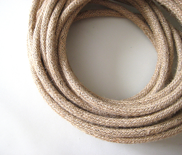 Rundes Textilkabel Oberfläche rustikale Kordel. Replik Kabel Seil aus Pita Oberfäche Typ Sackgarn, mit faserigen Fäden. Von 8 mm Durchmesser. Ideal für Vintageeinrichtungen. Perfekt für rustikale Hängeleuchten nach Maß.