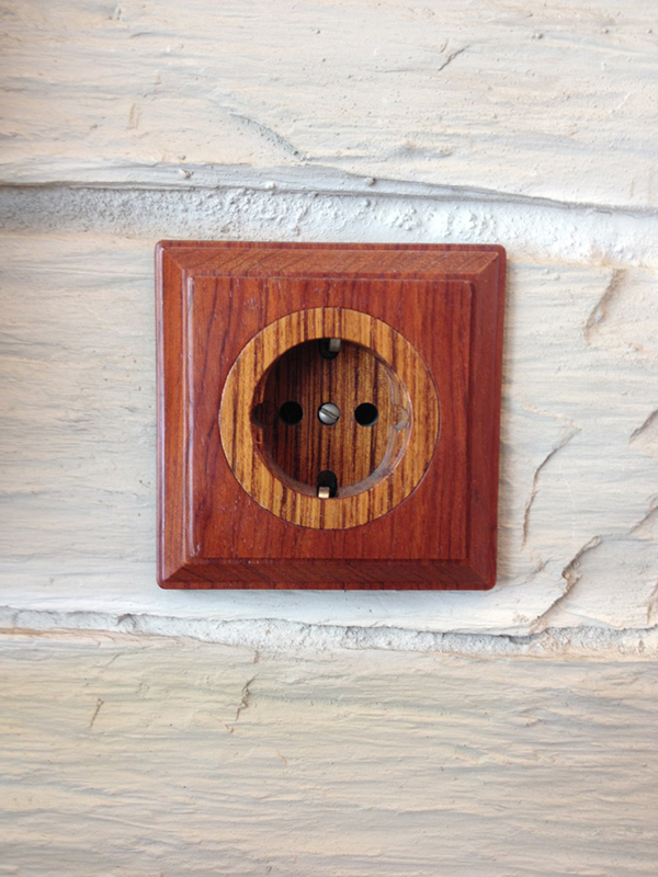 Präzisionsschalter, eingerahmt von natürlichen Materialien, sorgfältig ausgewählt damit sie Wärme und Komfort ausstrahlen.