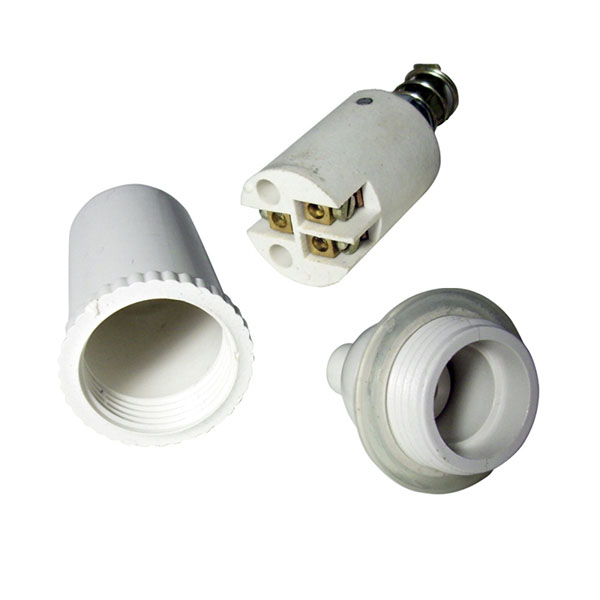 Schalter Typ „Birne“ zum Installieren am Ende des Kabels. Hergestellt aus Kunststoff der Farbe weiß. Aus-Wechselschalter, der das kombinierte Einschalten von zwei Punkten aus erlaubt.