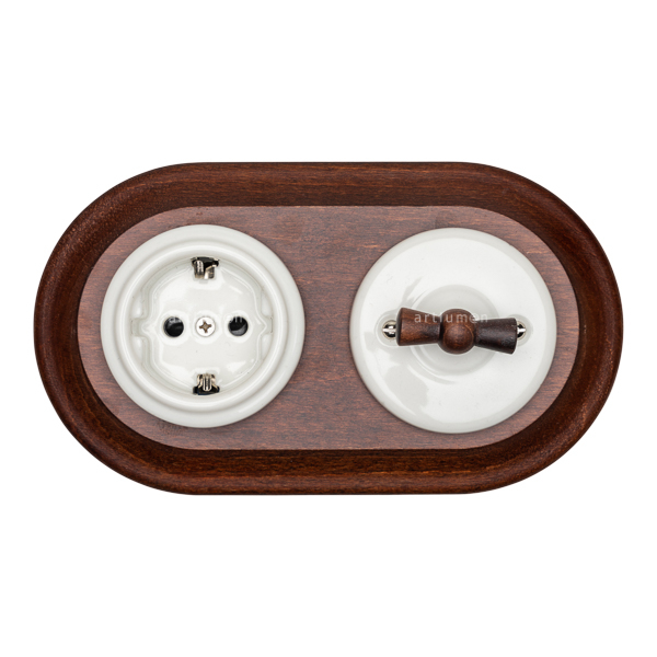Enthält: Porzellanschalter, Porzellansteckdose und Doppelrahmen aus Holz