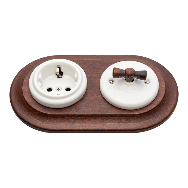 Enthält: Porzellanschalter, Porzellansteckdose und Doppelrahmen aus Holz