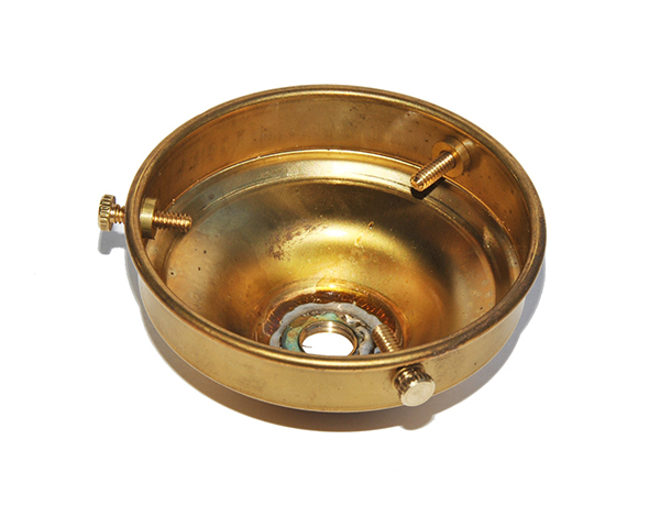 Schirmbefestigung aus Messing mit Befestigungsloch von 10mm und drei Schrauben zum Halten der Schirme und Lampenschirme.