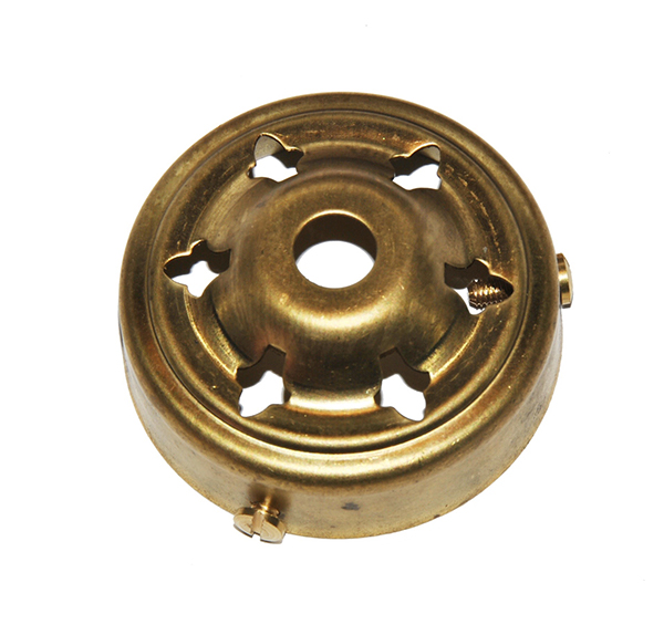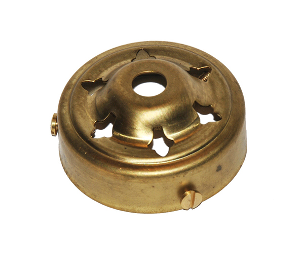 Schirmbefestigung aus Messing mit Befestigungsloch von 10mm und drei Schrauben zum Halten der Schirme und Lampenschirme.