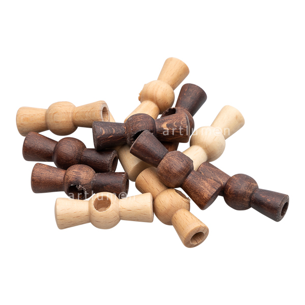 Griff Typ „Schleife“ für Porzellanschalter, hergestellt aus Buchenholz gebeizt mit Oberfläche natur. Erfreuen Sie sich an der Wärme und der Haptik des natürlichen Holzes jedes Mal, wenn Sie das Licht einschalten. Lassen sich perfekt mit unseren Trägern und Rahmen für Unterputzmontage kombinieren.