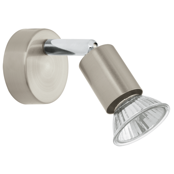 Leuchte mit einem Spot hergestellt aus Stahl mit Oberfläche Nickel matt. Vollständig ausrichtbar. Zur Montage an Wand oder Decke.