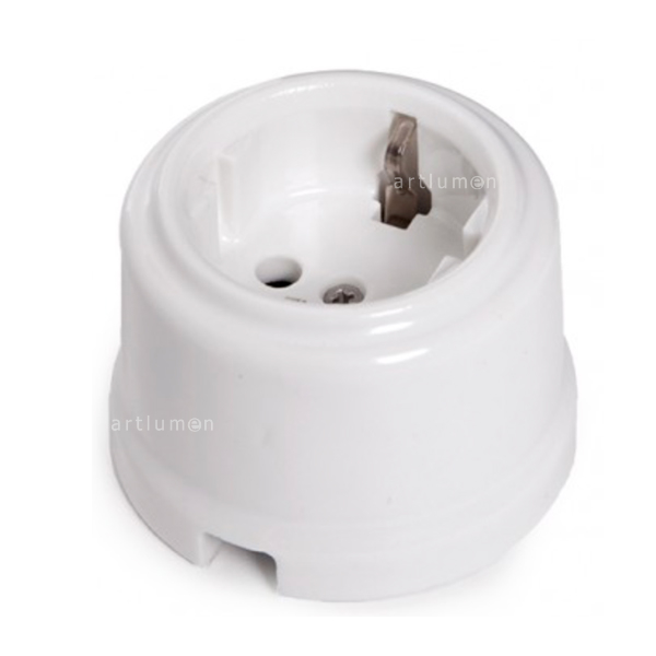 Originaldesign, Replik der antiken Porzellansteckdosen aber sie erfüllen dabei die aktuellen Sicherheitsnormen. Erinnern an rustikale Ambiente. Passen perfekt zu Retroinstallationen. Für alle Arten von Netzsteckern (fein und dick mit PE) Aufputzmontage. Hergestellt aus Porzellan.