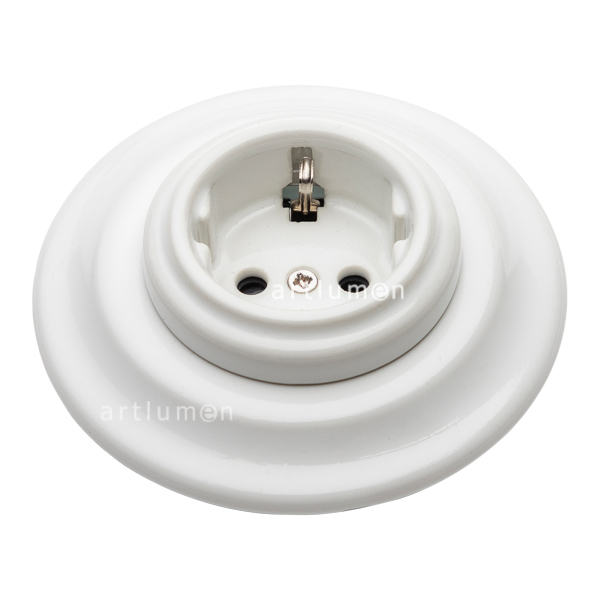 Steckdosenbasis hergestellt aus weißem Porzellan mit Rahmen ebenfalls aus Porzellan für Unterputzmontage. Replik der klassischen Steckdosen aus Porzellan. Elegantes Design in klaren Linien. Steckdose und Rahmen vereinen sich in einem Stück von großer Schönheit und Eleganz. Modelle konzipiert damit die Schalter nicht zu sehr von der Wand vorstehen.