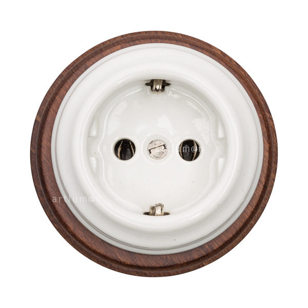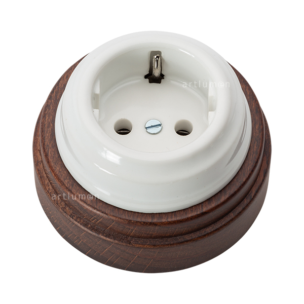 Originaldesign mit Erdung PE hergestellt aus Porzellan in weißer Farbe auf Basis aus Buchenholz gebeizt Farbe kastanienbraun. Perfekt für Ausstattungen Vintage oder um Ihrem Zuhause ein spezielles Detail zu geben.