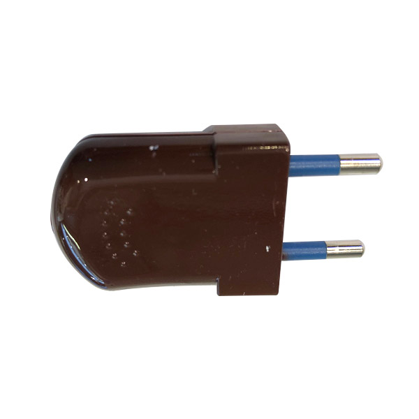 Dekorativer Stecker mit abgerundeten Formen, lackiert in dunkelbrauner Farbe. Ideal für die Kombinierung mit unserem braunen Textilkabel, um Lampen zu kreieren.