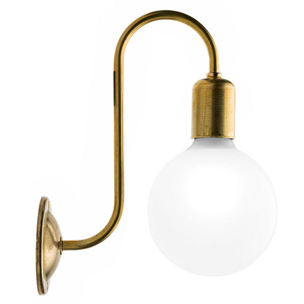 Wandstrahler mit runder Basis aus Bronze. In Retrooptik. Ihr langer gebogener Arm eignet sich sehr gut zum Verwenden von schönen Globeglühbirnen. Die geschwungenen Kurven lassen uns an Jugendstillampen denken, ideale Strahler für die Restauration in städtischen Räumen in historischen Gebäuden. Arm und Kappe der Lampenfassung aus Messing. Sie kann mit der Glühbirne nach unten oder nach oben gestellt werden nach dem gewünschten dekorativen Effekt. Lampenfassung Standard Schraubgewinde (E27)