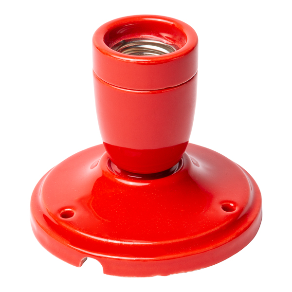Lampe im Retrostil hergestellt aus Porzellan Farbe rot.  Man kann sie an der Wand als Strahler, oder an der Decke als Deckenleuchte verwenden. Ideal zum Kombinieren von dekorativen Glühbirnen und um ihre ganze Schönheit zur Geltung zu bringen.
