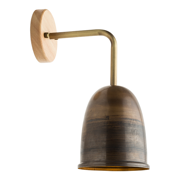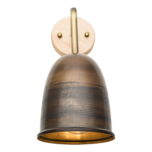Wandstrahler kombiniert aus Holz und Messing. Die Wandbasis ist aus hellem Holz, der Arm aus Messing und die Haube aus antikem Messing von 120mm Durchmesser. Ein Strahler aus edlen Materialien ideal für renovierte rustikales Ambiente, wo die Details mit Präzision gepflegt werden. Dieser Wandstrahler hat einen besonders intimen Charakter durch die Lichtqualität die er ausstrahlt, sanft und golden.