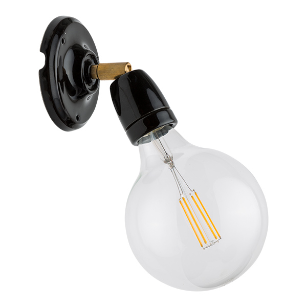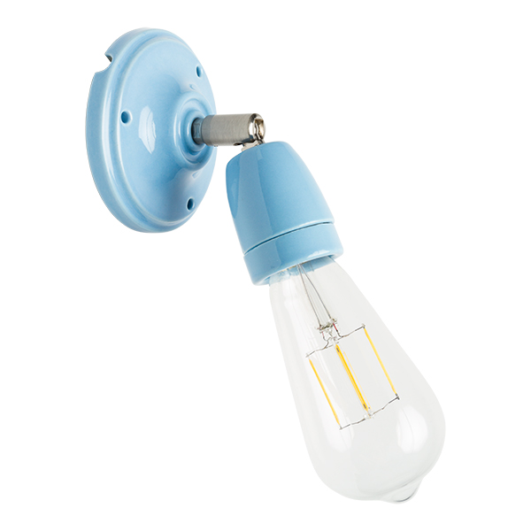 Wandstrahler, der die Halterung aus Porzellan mit einem Metallgelenk kombiniert, das erlaubt den Einfallswinkel der Glühbirne einzustellen und eine Lampenfassung in der gleichen Farbe wie das Porzellan der Wand. Es handelt sich um einen Strahler, der durch die Einfachheit und den Zauber, den er ausstrahlt, einnimmt. Ideal für Retro-, rustikale oder ländliche Ambiente. Es gibt ihn in Porzellan weiß, schwarz, grün und blau. Erlaubt die für ihren Einsatz geeignetste Glühbirne auszuwählen. Wenn es sich um ein Bad handelt, das viel Licht braucht, ist eine Globeleuchte matt perfekt (durch ihre grosse Leuchtkapazität), wenn ein milderes Licht benötigt wird, sind die Glühleuchten Typ Edison sehr elegant.