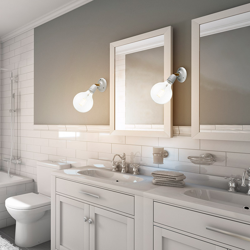 Wandstrahler, der die Halterung aus Porzellan mit einem Metallgelenk kombiniert, das erlaubt den Einfallswinkel der Glühbirne einzustellen und eine Lampenfassung in der gleichen Farbe wie das Porzellan der Wand. Es handelt sich um einen Strahler, der durch die Einfachheit und den Zauber, den er ausstrahlt, einnimmt. Ideal für Retro-, rustikale oder ländliche Ambiente. Es gibt ihn in Porzellan weiß, schwarz, grün und blau. Erlaubt die für ihren Einsatz geeignetste Glühbirne auszuwählen. Wenn es sich um ein Bad handelt, das viel Licht braucht, ist eine Globeleuchte matt perfekt (durch ihre grosse Leuchtkapazität), wenn ein milderes Licht benötigt wird, sind die Glühleuchten Typ Edison sehr elegant.