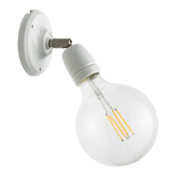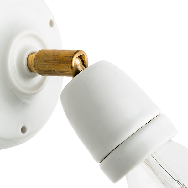 Wandstrahler, der die Halterung aus Porzellan mit einem Metallgelenk kombiniert, das erlaubt den Einfallswinkel der Glühbirne einzustellen und eine Lampenfassung in der gleichen Farbe wie das Porzellan der Wand. Es handelt sich um einen Strahler, der durch die Einfachheit und den Zauber, den er ausstrahlt, einnimmt. Ideal für Retro-, rustikale oder ländliche Ambiente. Es gibt ihn in Porzellan weiß, schwarz, grün und blau. Erlaubt die für ihren Einsatz geeignetste Glühbirne auszuwählen. Wenn es sich um ein Bad handelt, das viel Licht braucht, ist eine Globeleuchte matt perfekt (durch ihre grosse Leuchtkapazität), wenn ein milderes Licht benötigt wird, sind die Glühleuchten Typ Edison sehr elegant.
