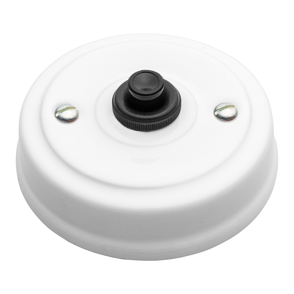 Klingel -Tastschalter hergestellt aus weißem Porzellan. Der Tastschaltermechanismus hat eine schwarze Farbe, ist von reduzierter Größe und passt perfekt zu dem weißen Porzellan. Er kann einzeln, mit einem Holzträger oder zusammen installiert werden, indem man ihn mit anderen Schaltern aus der gleichen Serie, Steckdosen, Schaltern etc. kombiniert.
