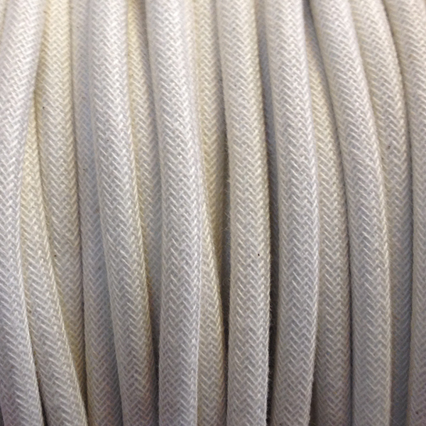 Rundes Stromkabel mit Textilummantelung cremefarben (Oberfläche Baumwolle). Perfektes Zusatzteil für Ihre Lampen. Dekoratives Kabel um einen Hauch Originalität in unser Zuhause zu bringen.