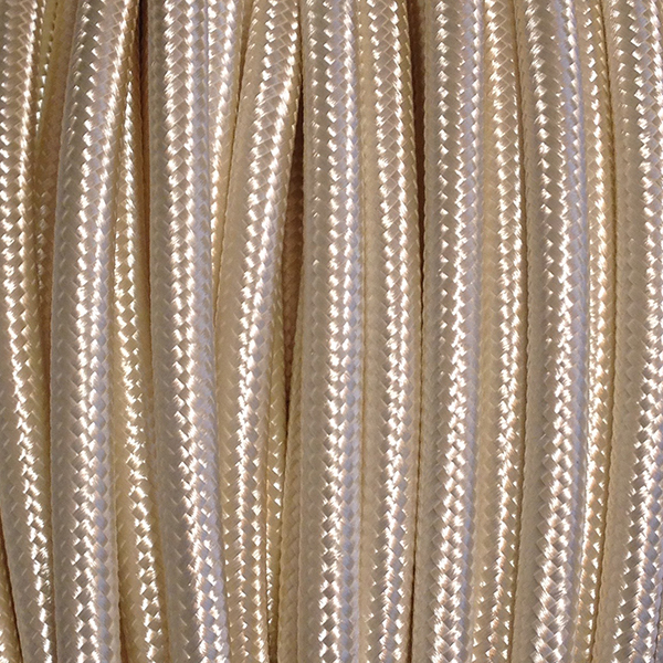 Rundes Stromkabel mit Textilummantelung elfenbeinfarben (Oberfläche perlmutt). Perfektes Zusatzteil für Ihre Lampen. Dekoratives Kabel um einen Hauch Originalität in unser Zuhause zu bringen.
