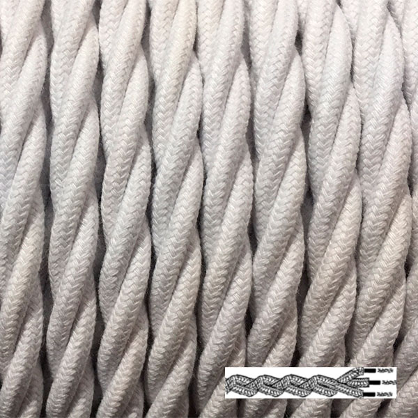 Textilkabel geflochten, Farbe WEISS Replik des herkömmlichen Kabels. Elegante Lösung für Installationen, die mit einem Hauch Vintage ausgestattet sind. Ideal um Ihre Lampen zu kreieren oder zu restaurieren.