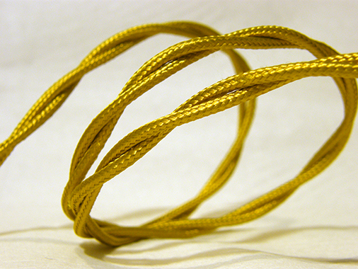 Textilkabel geflochten, Farbe GOLD. Replik des herkömmlichen Kabels. Elegante Lösung für Installationen, die mit einem Hauch Vintage ausgestattet sind. Ideal um Ihre Lampen zu kreieren oder zu restaurieren.