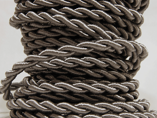 Textilkabel geflochten, Farbe GRAU . Es handelt sich um ein sehr originelles Textilkabel, da die Oberfläche einen Farbeffekt Seide hat. Glänzende und einheitliche Farben. Ideal für Lampen und um Installationen in eleganter und moderner Optik zu realisieren.