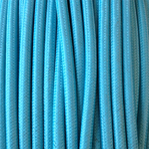 Rundes Kabel mit Textilummantelung in türkiser Farbe. Türkis ist eine einnehmende, erfrischende, entspannende und beruhigende Farbe. ´Türkis ist empfehlenswert bei psychischer Belastung, Müdigkeit und dem Gefühl von Reinheit. Es ist eine leuchtende Farbe zwischen Grün und Blau. Dekoratives Kabel ideal um Ihre eigenen Lampen und Hängeleuchten zu entwerfen.
