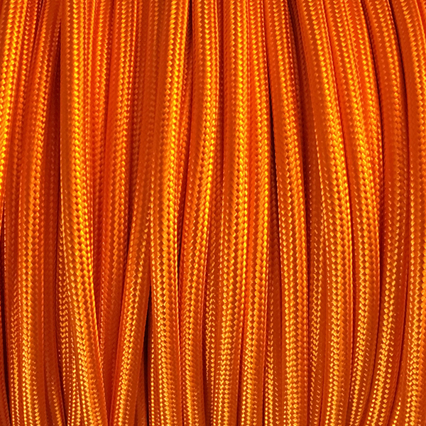 Rundes Stromkabel mit Textilummantelung Farbe orange.