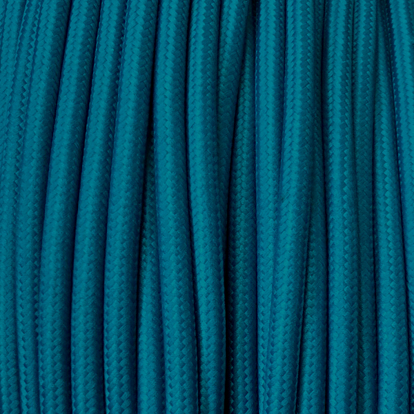 Rundes Stromkabel mit Textilummantelung Farbe petrolblau Ein intensives Blau, eine starke und sehr elegante Farbe. Bringt Eleganz und Raffinesse in jedwedes Zimmer.