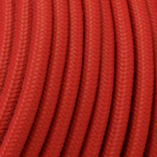 Rundes Stromkabel mit Textilummantelung Farbe rot.