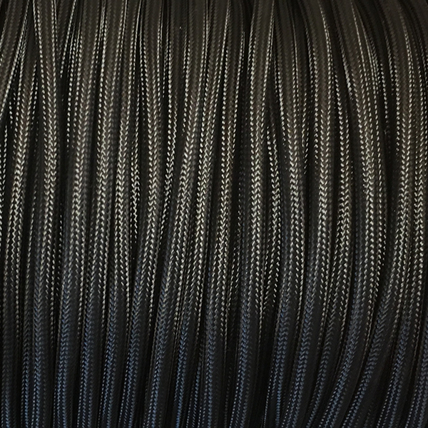Rundes Stromkabel mit Textilummantelung Farbe schwarz.