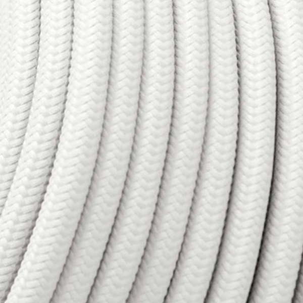 Rundes Stromkabel mit Textilummantelung Farbe weiß.