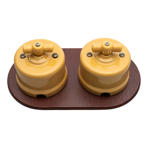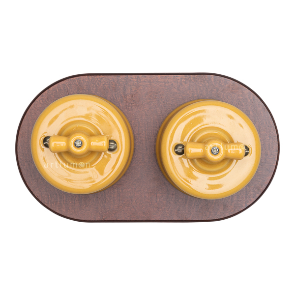 Trägerplatte von geringer Dicke zur Verwendung als Schalterbasis. Ideal für Schalter und Steckdosen aus Porzellan oder Repliken Retro. Betont die Schönheit des darauf angebrachten Schalters. Rundes Holz gebeizt in der Farbe kastanienbraun dunkel, für zwei Elemente. Aufputzmontage. Das Holz hat kein Loch um sie je nach Typ und Größe des Schalters bohren zu können.